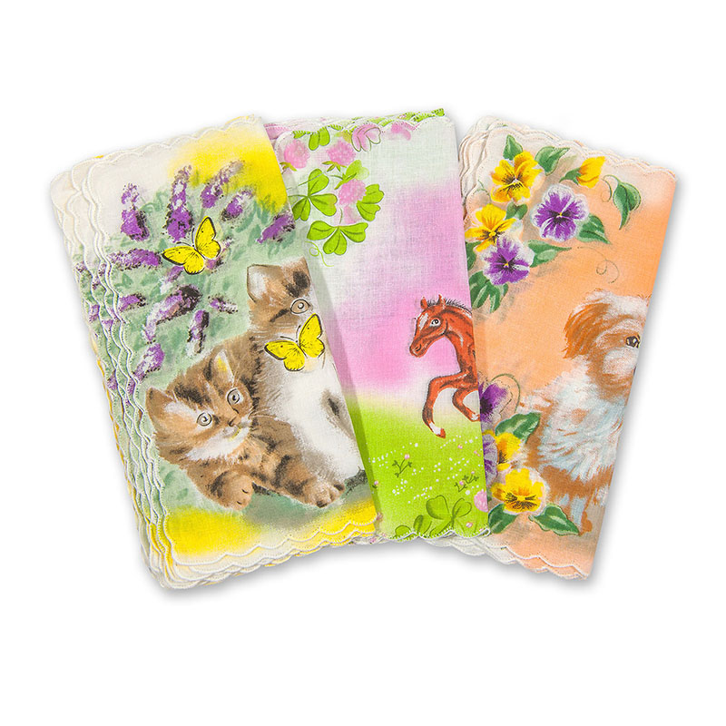 Платочки для самых маленьких — из самой мягкой ткани, с изображениями весёлых персонажей.