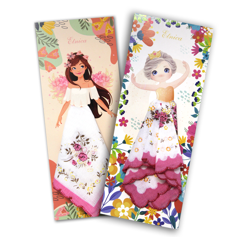 Серия сувенирных женских платков с большим выбором печатных рисунков.