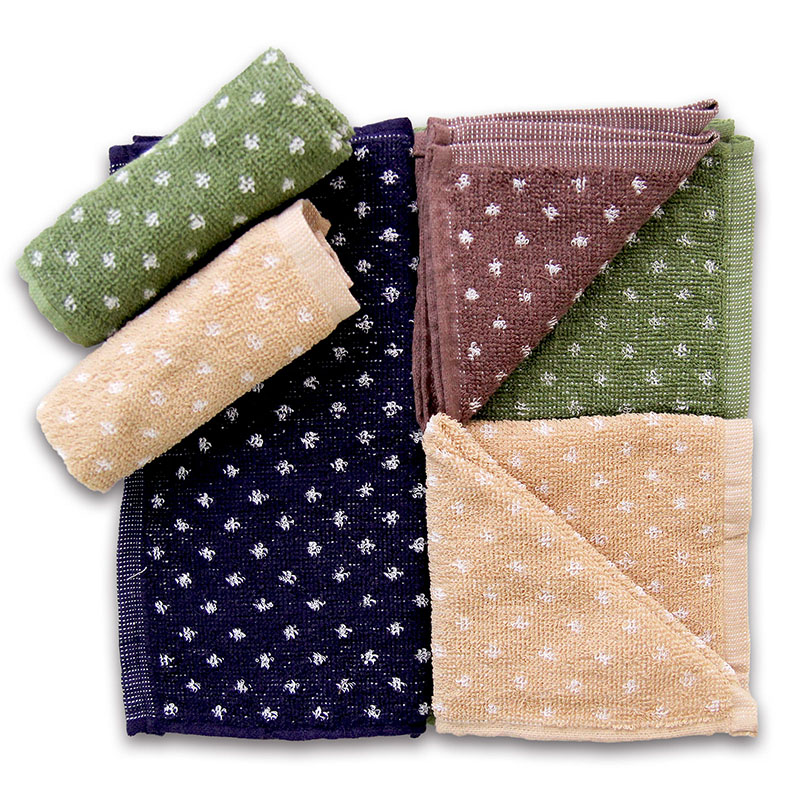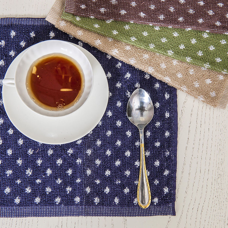 Натуральные махровые пестротканные салфетки в четырех цветах: темно-синий, шоколадный, оливковый, в белый горошек из экологически чистого 100% хлопка, в упаковке 12 шт.